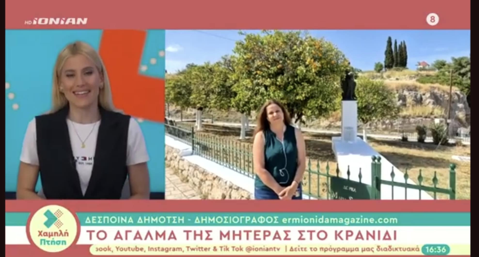 Ζωντανή σύνδεση στην εκπομπή “Χαμηλή Πτήση” με την Αγγελική Σπυροπούλου στο Ionian TV στις 9/5/2025 για το άγαλμα της μητέρας στο Κρανίδι