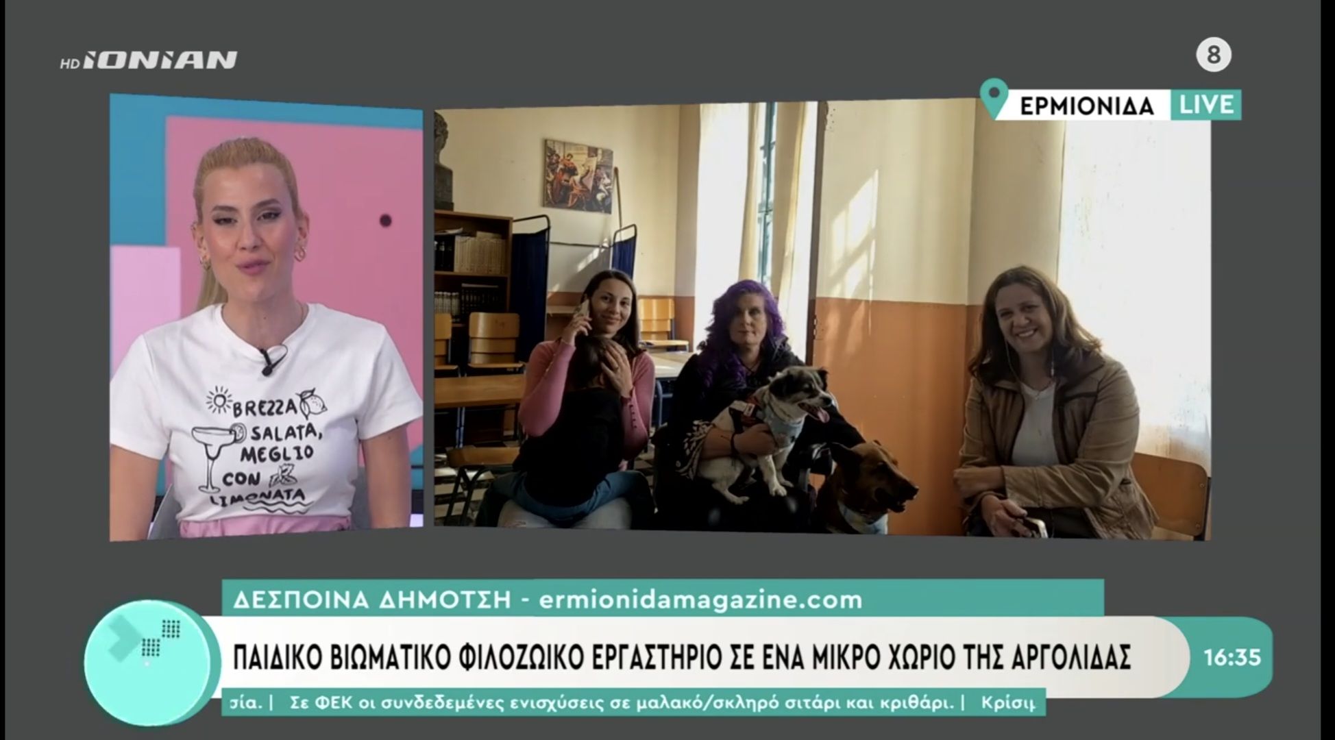 Το ERmionida MAGazine σας παρουσιάζει μία πρωτότυπη δράση σε ένα μικρό χωριό της Ερμιονίδας που έχει ως στόχο να ευαισθητοποιήσει τα μικρά παιδιά , αλλά και τους μεγάλους, για τα ζώα! Στην εκπομπή “Χαμηλή Πτήση” με την Αγγελική Σπυροπούλου, στην τηλεόραση του Ionian γνωρίσαμε και τους τρεις αξιαγάπητους τετράποδους βοηθούς που είναι οι πρωταγωνιστές αυτών των δράσεων.