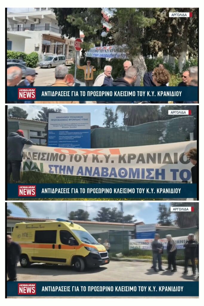 Αναστάτωση έχει δημιουργηθεί στην τοπική κοινωνία σχετικά με το προσωρινό κλείσιμο του Κέντρου Υγείας Κρανιδίου λόγω εργασιών και την μεταφορά του στο Ιατρείο Ερμιόνης.