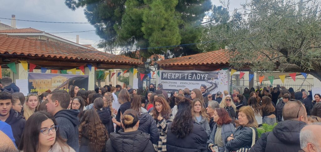 Ακολούθησε πορεία μέχρι την πλατεία “Ηρώων” όπου μαθητές τοποθέτησαν 57 λευκά λουλούδια, όσα και τα θύματα της τραγωδίας. Με πανό και συνθήματα η φράση “ΔΕΝ ΕΧΩ ΟΞΥΓΟΝΟ” ακούστηκε σε κάθε σημείο της Ερμιονίδας, όπου έκανε αισθητή την παρουσία της και συνέβαλε ως μία πόλη από τις περίπου 380 που συμμετείχαν στα συλλαλητήρια που διοργανώθηκαν με αφορμή την συμπλήρωση των δύο ετών από την μεγάλη αυτή Εθνική τραγωδία.
