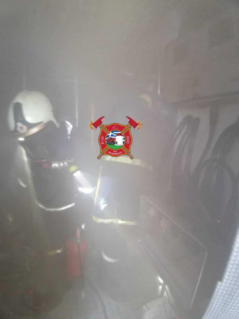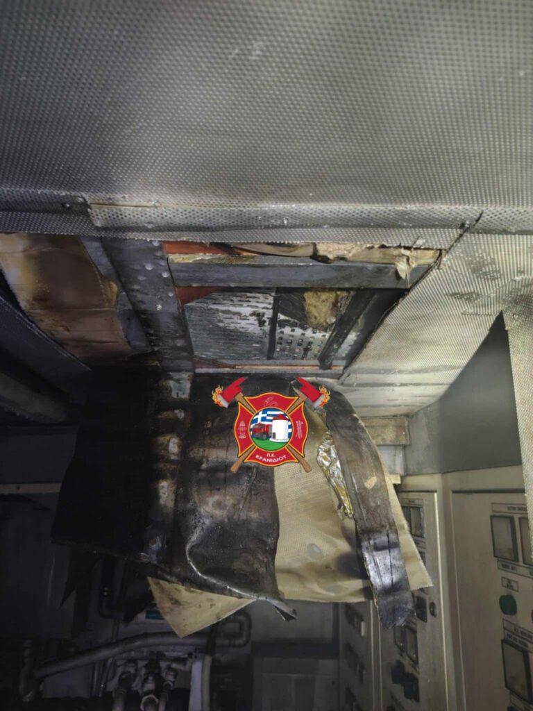 Η φωτιά περιορίστηκε στον χώρο του μηχανοστασίου, προκαλώντας ζημιές μόνο στην οροφή. Το Πυροσβεστικό Κλιμάκιο Κρανιδίου επενέβη άμεσα για ακόμη μία φορά