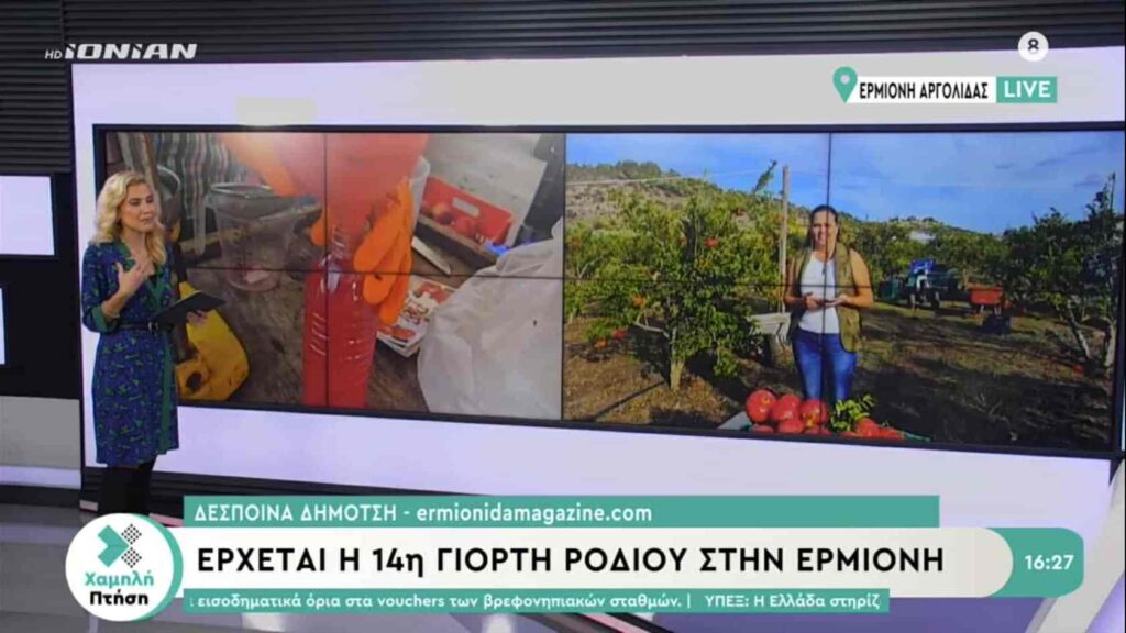 Το ERmionida MAGazine σας παρουσιάζει την 14η Γιορτή Ροδιού Ερμιόνης για δεύτερη φορά, μέσω της εκπομπής “Χαμηλή Πτήση” με την Αγγελική Σπυροπούλου στην τηλεόραση του Ionian. 24/10/25